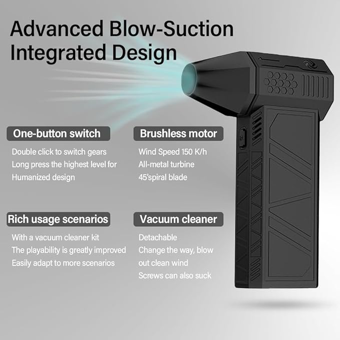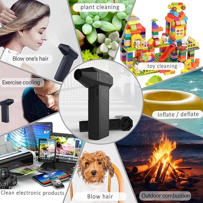 【High Quality Material】Mini Jet Blower Made of high hardness and high-temperature resistant materials, it has perfect texture, strong explosive power and low heat generation, making it more convenient to use. It utilizes a custom-made 32mm diameter low-voltage brushless high-speed motor, providing high efficiency and low heat generation.