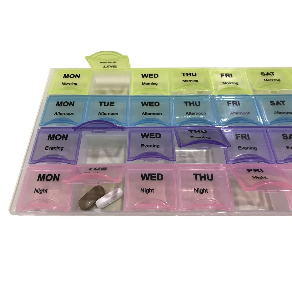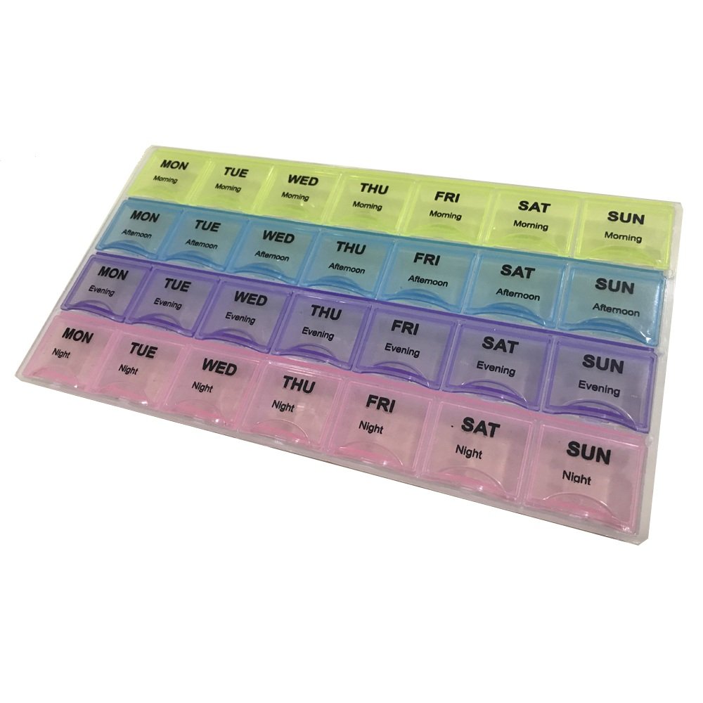 7 Days, 4 Times a Day Pill Organizer Planner for timely taking medicines through out the day.